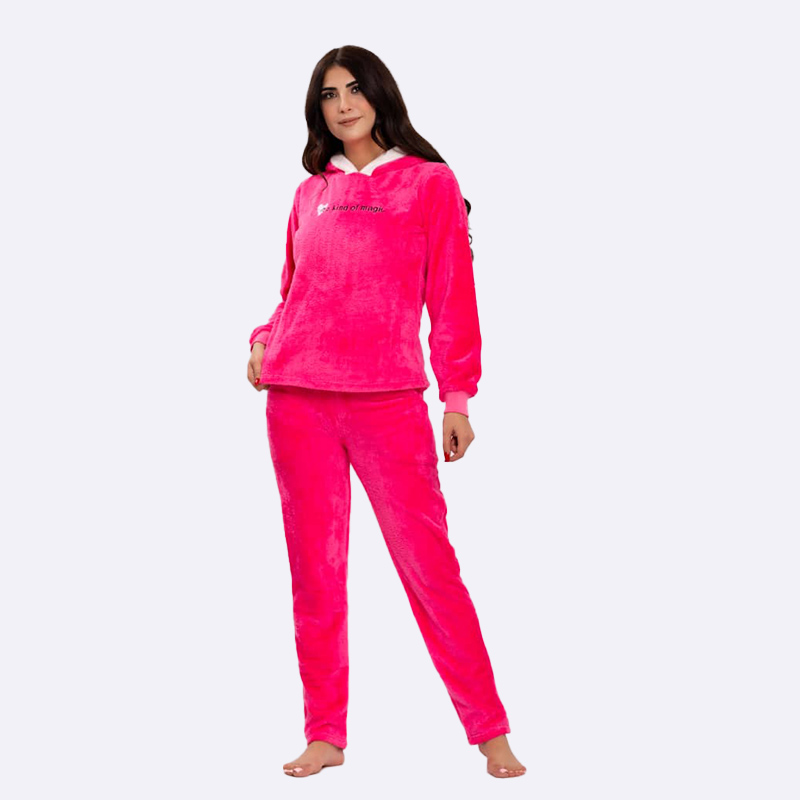 استمتعي بأوقات الراحة بأناقة مع هذا الطقم المخملي الناعم باللون الوردي الجذاب. مثالي للاسترخاء في المنزل أو قضاء وقت ممتع مع الأصدقاء.