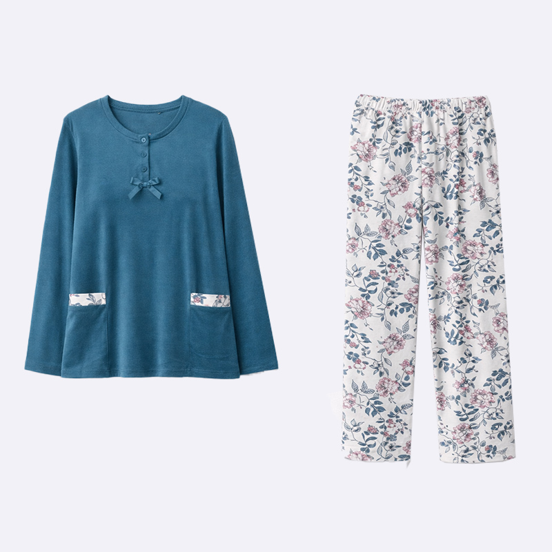 استمتعي بنوم هانئ ومريح مع طقم البيجامة النسائي بنقشة الزهور. تصميم أنيق ومريح يجعله الخيار الأمثل للاسترخاء في المنزل.