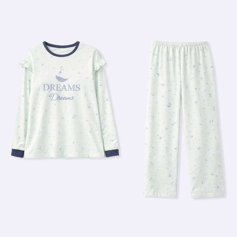 استمتعي بنوم هانئ ومريح مع طقم البيجامة النسائي الأنيق. تصميم مريح وأنيق بنقشة الأحلام، مثالي للاسترخاء في المنزل.