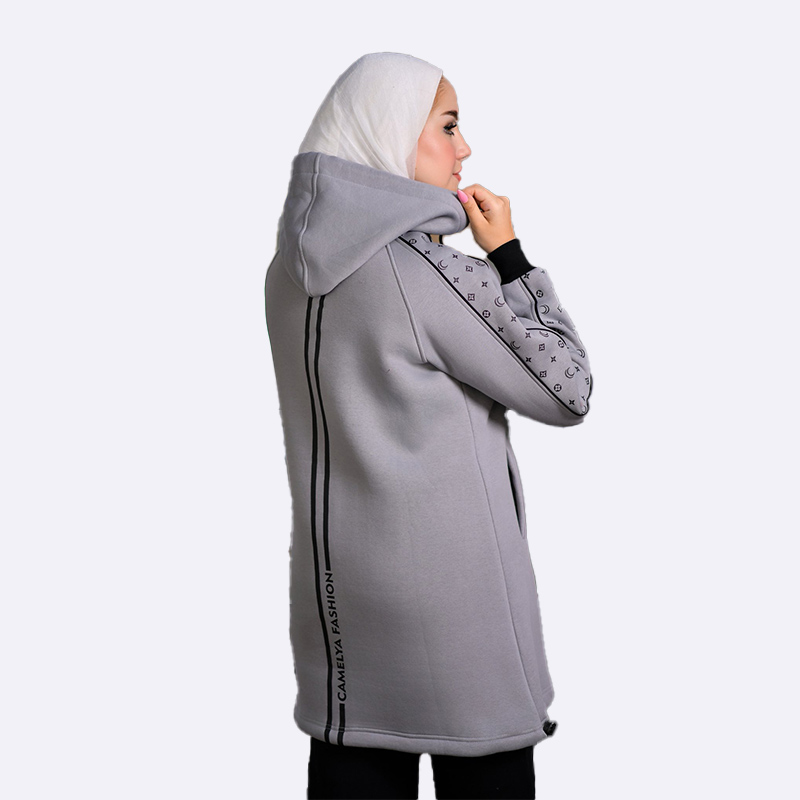 Fleece Tunic Hoodie with Printed Sleeves