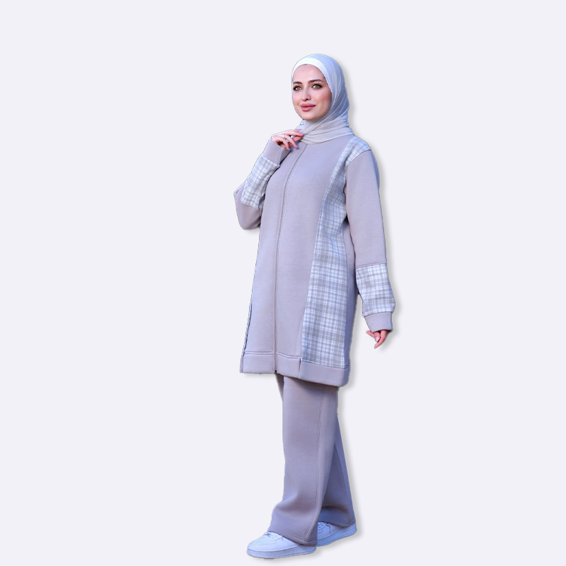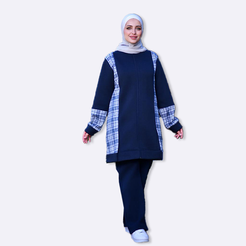 بجامة نسائية شتوية من قماش الفليس الدافئ، تتميز بتصميم عصري مع دمج قماش كاروهات على الأكمام والجانب لإطلالة أنيقة ومميزة، مريحة ومناسبة للاستخدام اليومي في الأجواء الباردة.