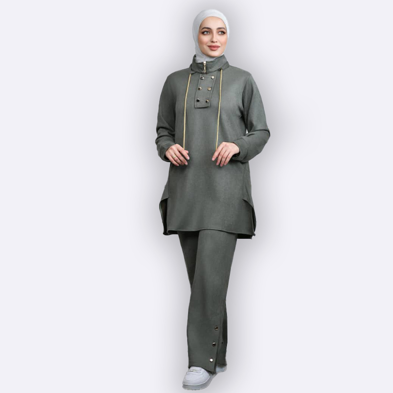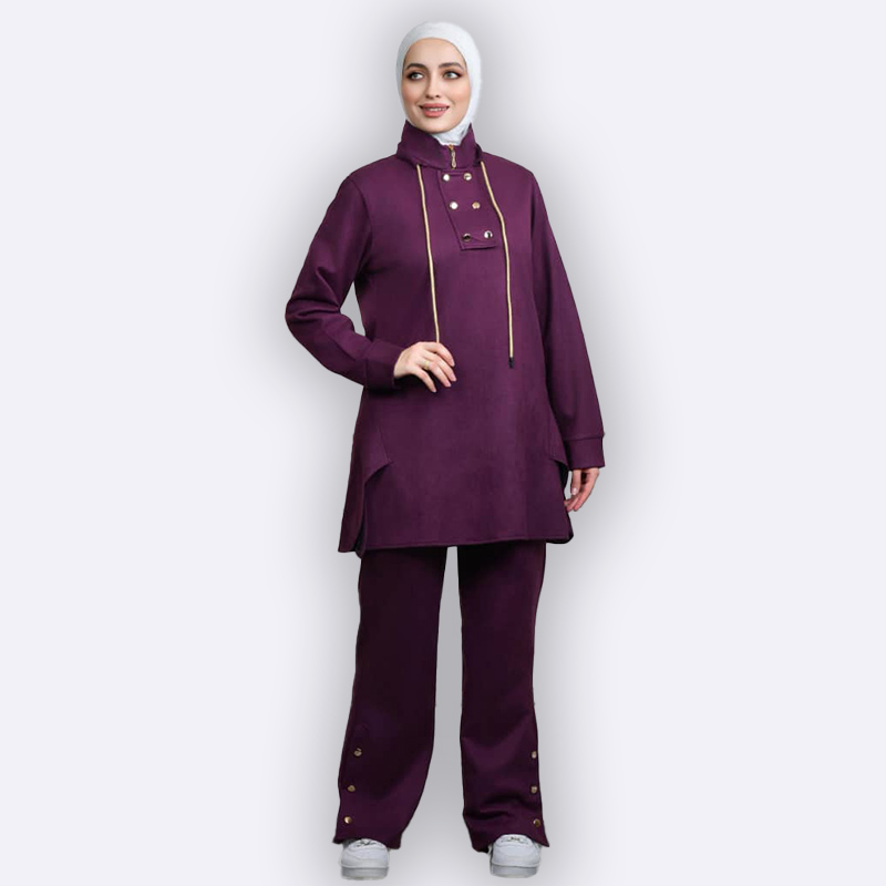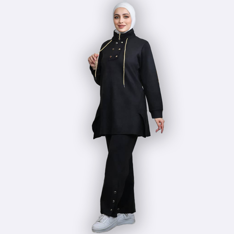 طقم مريح بتصميم عملي مناسب للمنزل والخروج ويتميز بخامة فليس ناعمة توفر دفئًا وراحة طوال اليوم.