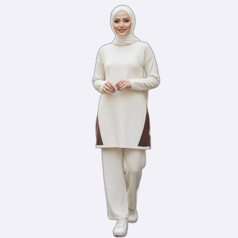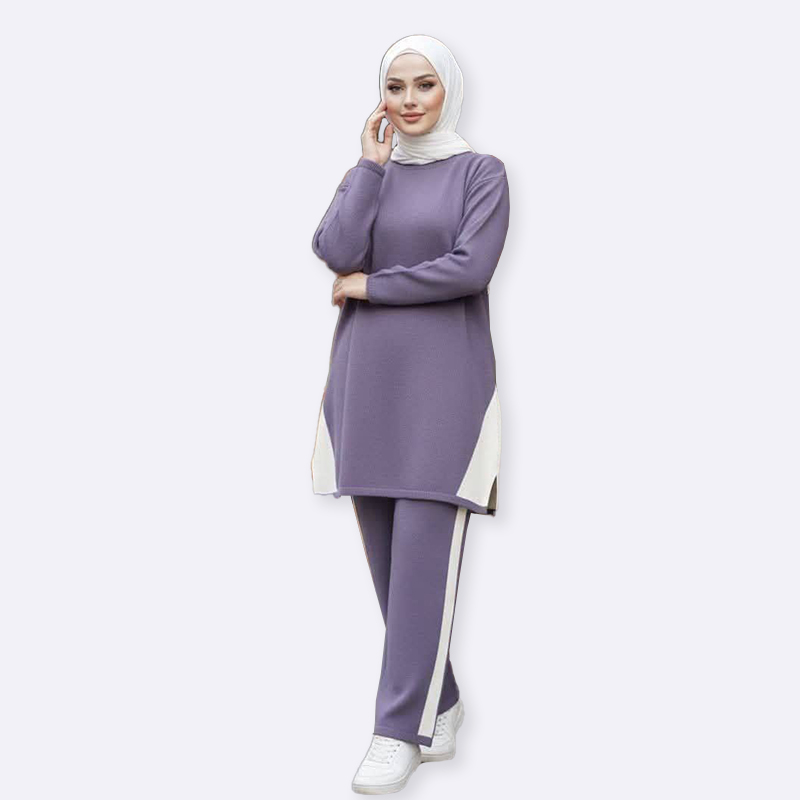 استمتعي بأناقة لا مثيل لها مع هذا الطقم المريح والأنيق. تصميم عصري ومريح يجعله مثالياً للاسترخاء أو الخروج بإطلالة عصرية.