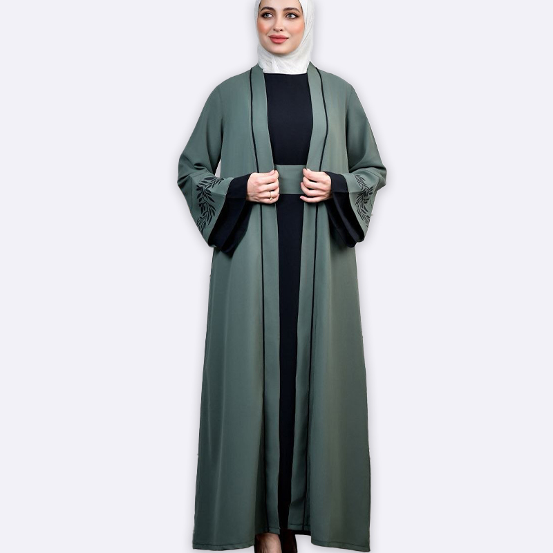 تألقي بأناقة مع طقم العباية الفاخر. تصميم عصري بأكمام مطرزة يضفي لمسة جمالية فريدة. مثالي للمناسبات الخاصة واليومية.