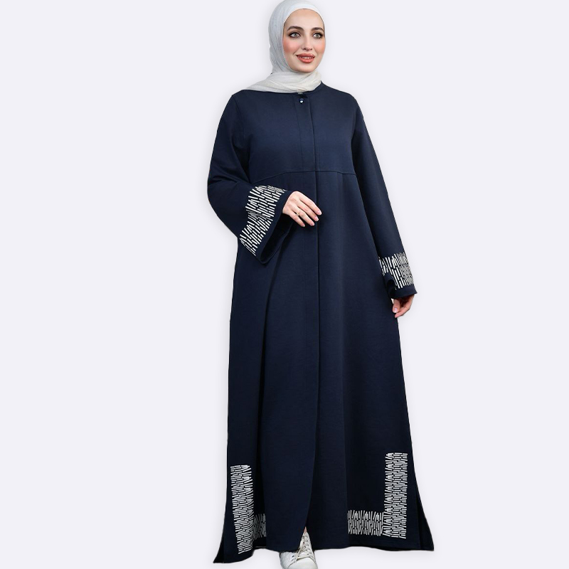 تألقي بأناقة مع هذه العباية السوداء الفاخرة. تصميم عصري مزين بتفاصيل هندسية أنيقة تضفي لمسة فريدة. مثالية للمناسبات الخاصة والاستخدام اليومي.