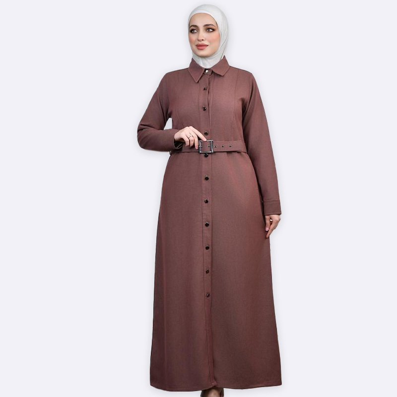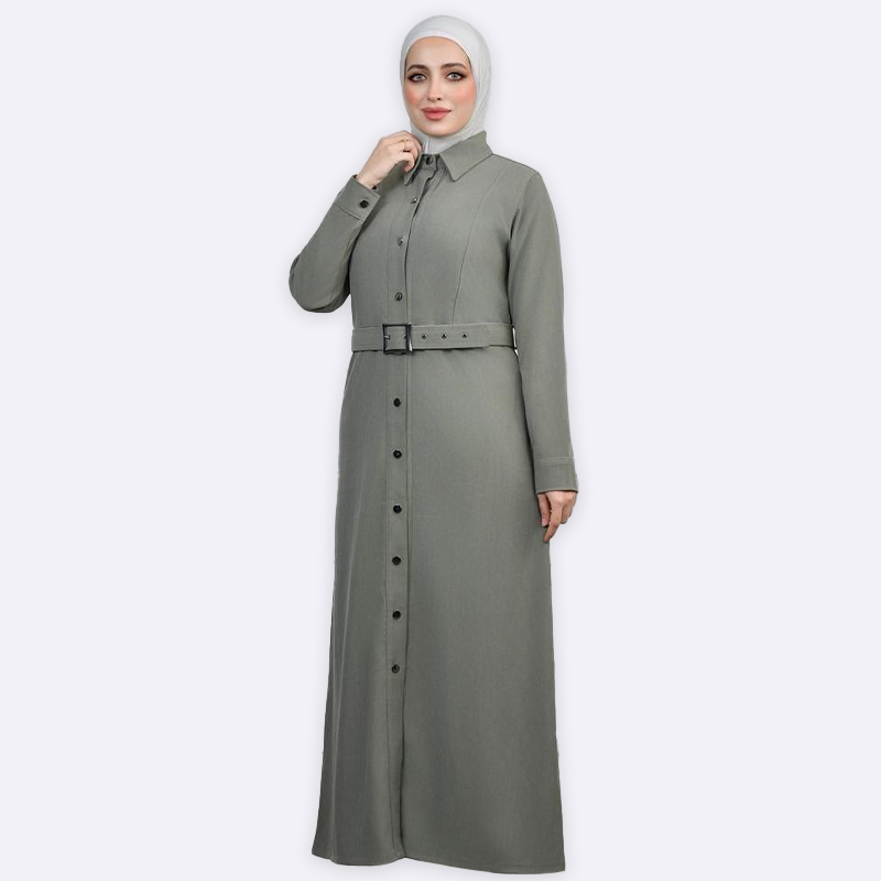 تألقي بأناقة مع فستان العباية المصنوع من الدنيم، والمزود بحزام أنيق لتحديد الخصر. تصميم عصري ومحتشم يجمع بين الراحة والأناقة في آن واحد.