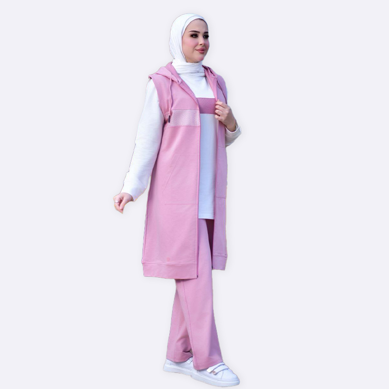 انطلقي بأناقة مع هذا الطقم الرياضي بطبقات باللون الوردي الجذاب. تصميم عصري ومريح يجمع بين الأناقة والعملية، مثالي لإطلالة يومية أنيقة وعصرية.