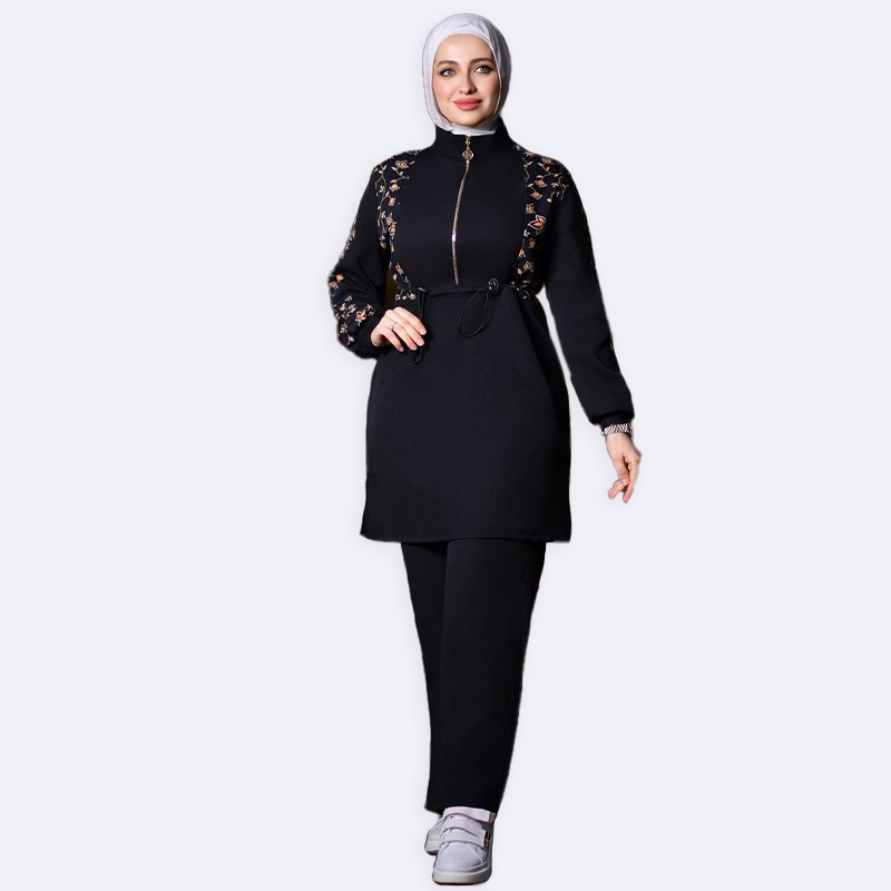 تألقي بإطلالة رياضية أنيقة ومحتشمة مع هذا الطقم المزين بتطريز الزهور. تصميم عصري ومريح يجمع بين الأناقة والعملية.