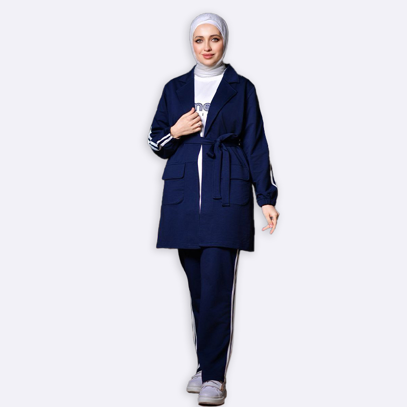 كوني متألقة وعصرية مع هذا الطقم الرياضي الأنيق. جاكيت بحزام وبنطلون مريح بتصميم عصري يمنحك إطلالة جذابة ومريحة في آن واحد.