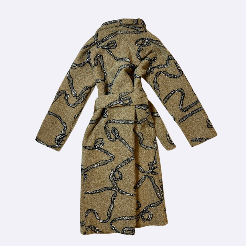 Women's Long Wool/Knit Coat with Rope/Pattern Prin