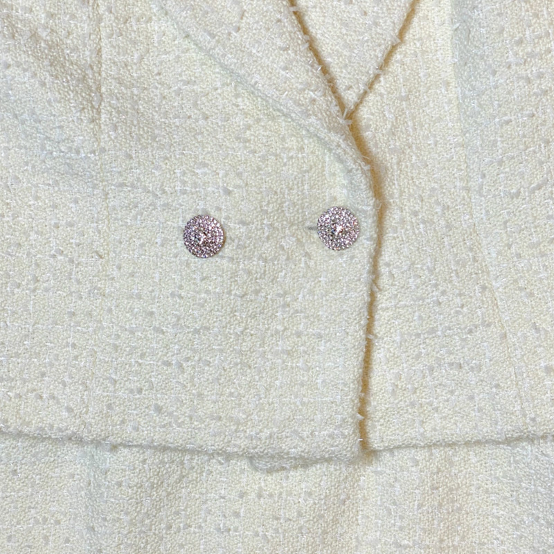 طقم نسائي أنيق مكوّن من جاكيت قصير بتصميم كلاسيكي وتنورة مستقيمة، مصنوع من قماش التويد الفاخر ليمنحك إطلالة راقية ومناسبة للمناسبات الرسمية أو الإطلالات اليومية الراقية.