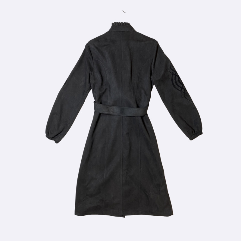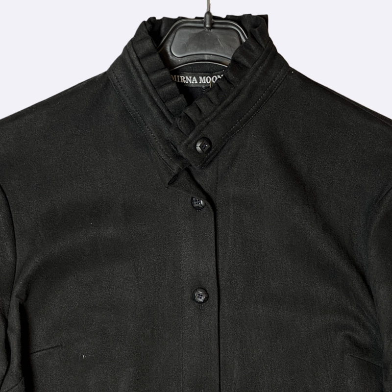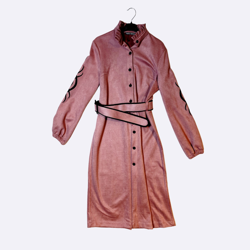 فستان ميدي أنيق بتصميم بأزرار كاملة وحزام خصر يبرز القوام، يتميز بأكمام طويلة مزودة بتفاصيل زخرفية لإطلالة كلاسيكية مناسبة للاستخدام اليومي والمناسبات البسيطة.