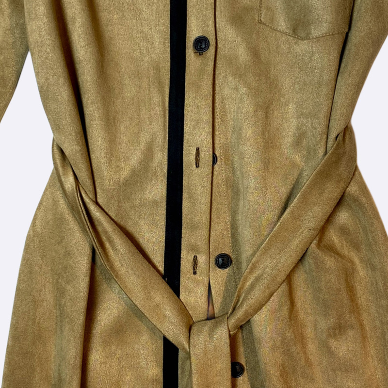 فستان قميصي أنيق بتصميم كلاسيكي وأزرار أمامية، يأتي مع حزام خصر قابل للربط ليعطي تناسقاً جميلاً للقوام، ويتميز بلمسات بسيطة عند الجيب لتكملة الإطلالة اليومية الراقية.
