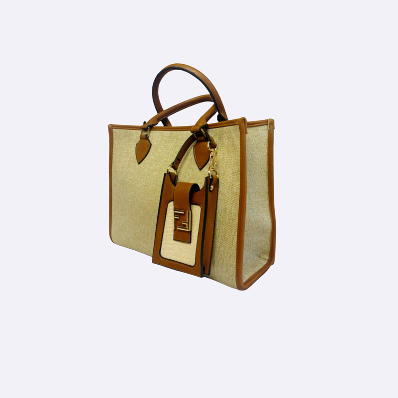 Fendi Style Canvas and Leather Trim Tote with Pouch