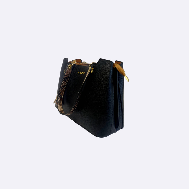 حقيبة يد نسائية ذات تصميم منظم ومقبض علوي، مزودة بتعليقة شرابة جلدية وحزام كتف قابل للفصل بتفاصيل منقوشة.