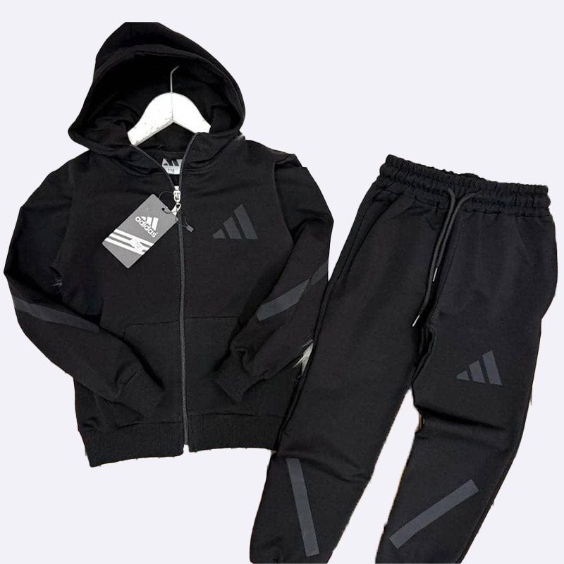 طقم رياضي مريح يتكون من سترة وسروال، مصمم لتوفير أقصى درجات الراحة سواء أثناء التمارين أو الأوقات اليومية. يتميز بتصميمه العصري وخفة وزنه، مما يجعله مثاليًا للارتداء أثناء الحركة أو الاسترخاء.