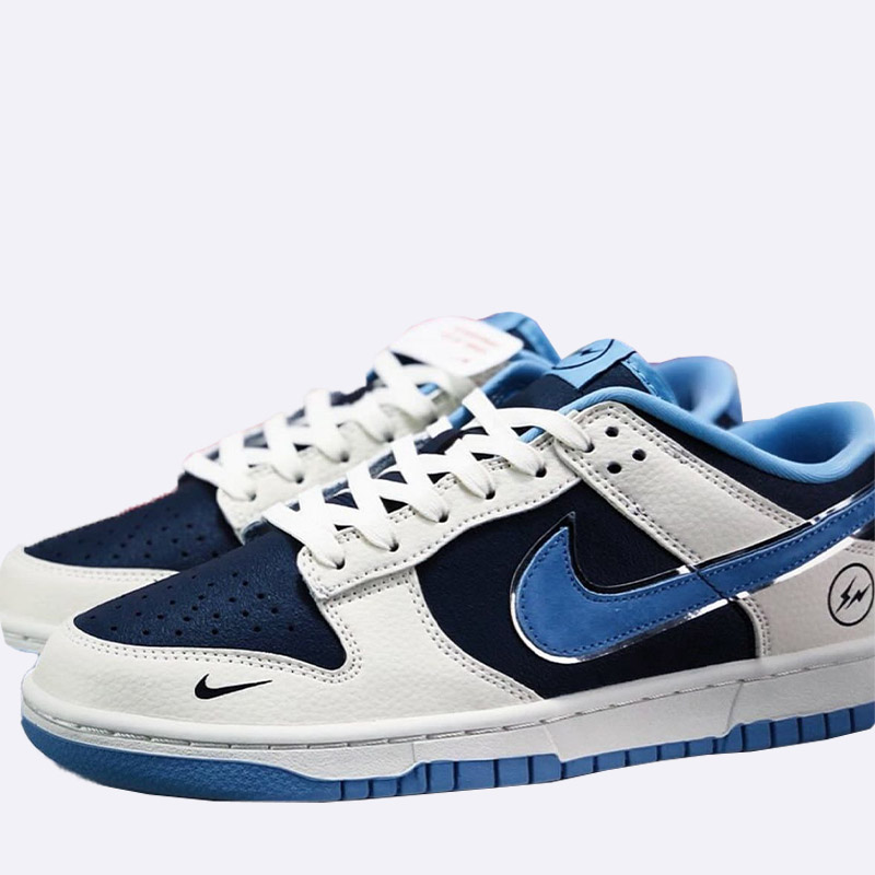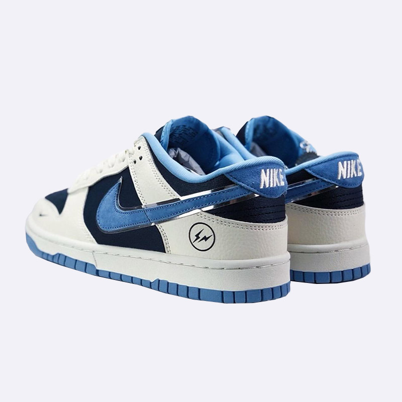 حذاء رياضي مميز من نايكي دانك لو، مصمم ضمن تعاون حصري مع فراجمنت ديزاين. يتميز بتصميمه الكلاسيكي وقصته المريحة، مما يجعله مناسباً للارتداء اليومي ولإطلالة عصرية
