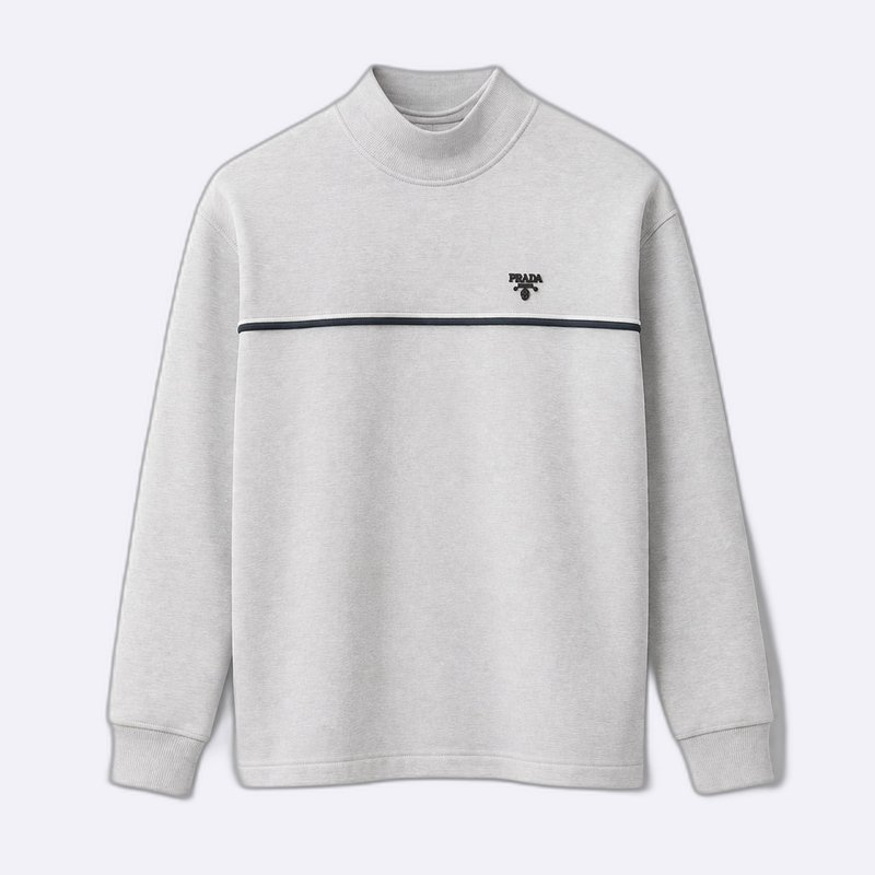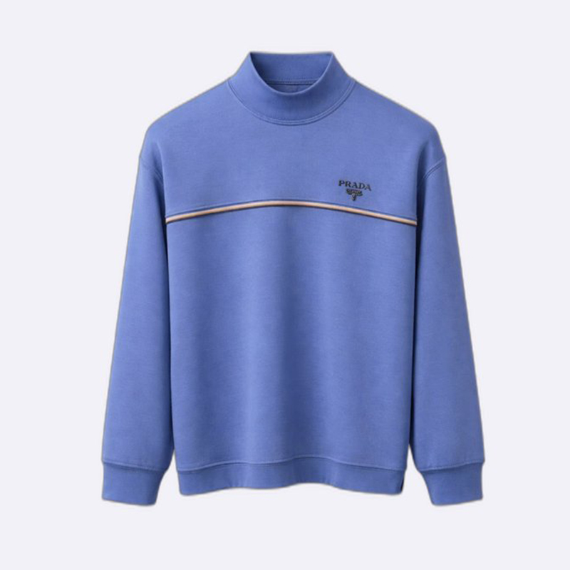 كنزة مريحة بتصميم عصري يتميز بياقة مرتفعة وشريط أفقي رفيع يمنح مظهراً أنيقاً