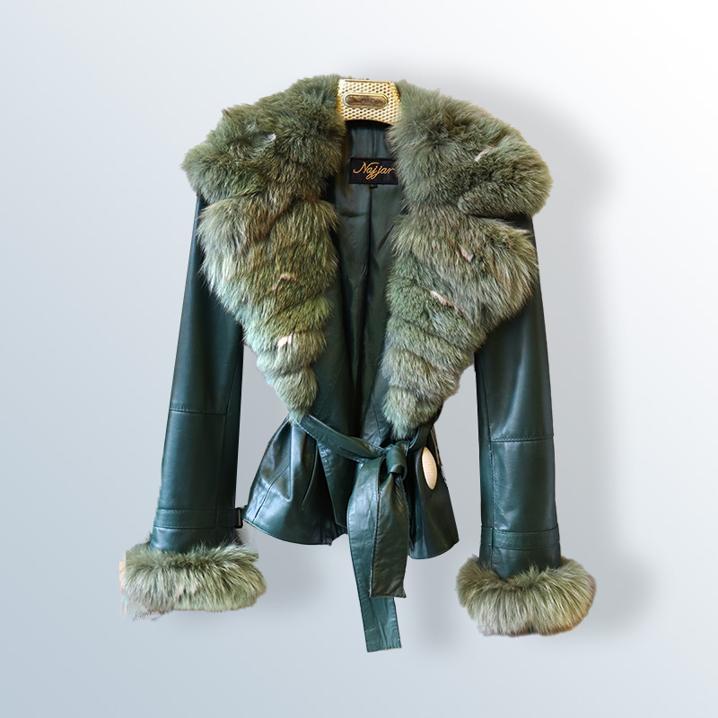 Fox fur leather jacket