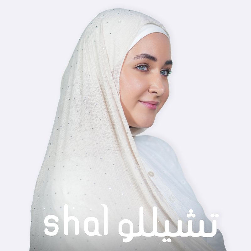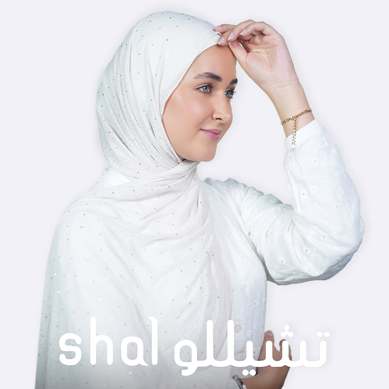 شال ناعم مزين بحبيبات صغيرة لامعة تضفي لمسة جمالية هادئة