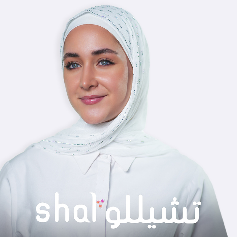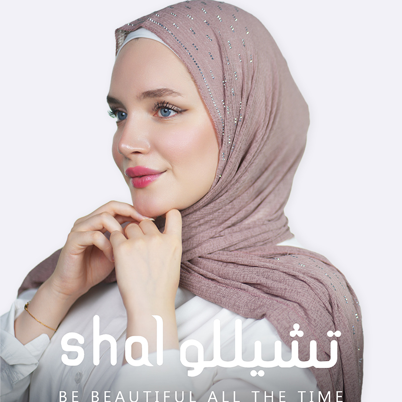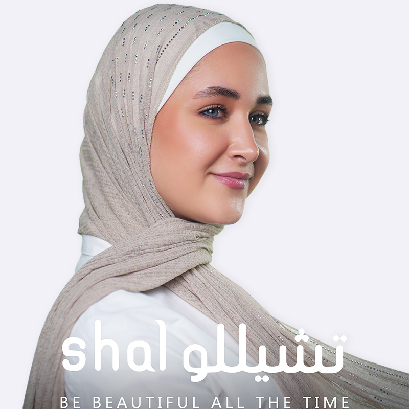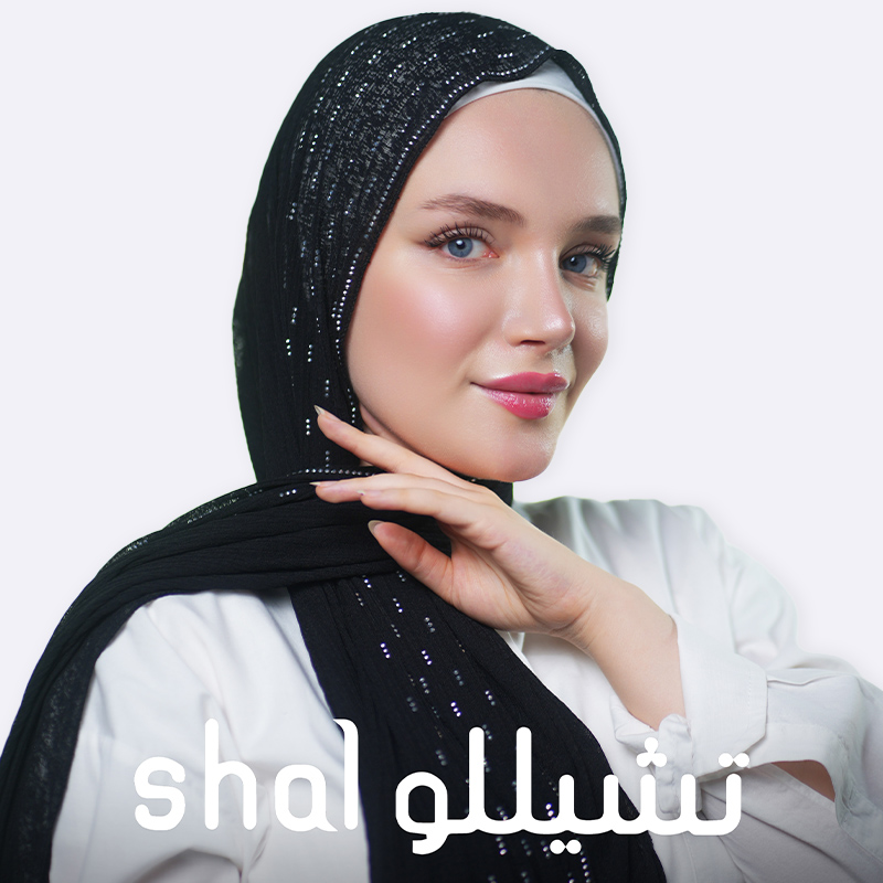 شال قطني يحتوي على تفاصيل لامعة موزعة بانتظام على كامل النسيج