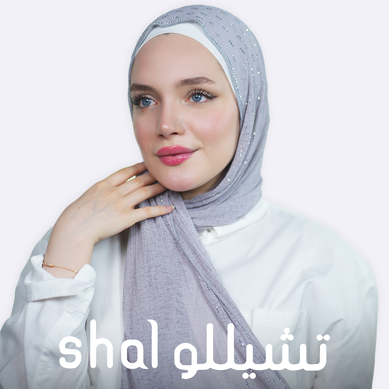 طرحة أنيقة مزينة بصفوف متوازية من الحبيبات اللامعة على الأطراف