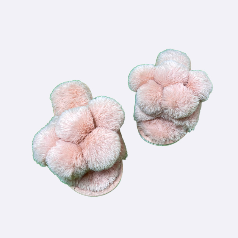 انعمي بالراحة والأناقة مع شبشب بكرات بوم بوم المنفوشة. تصميم مريح ومثالي للاسترخاء في المنزل. متوفر بألوان متعددة لتناسب ذوقك.