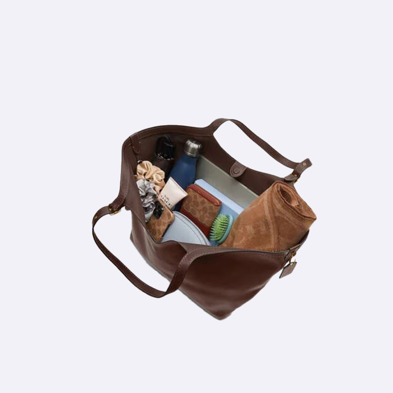 أضيفي لمسة من الأناقة إلى إطلالتك مع حقيبة كوتش المصنوعة من جلد الحصى المصقول. تصميم عصري وواسع يجعلها مثالية للاستخدام اليومي.