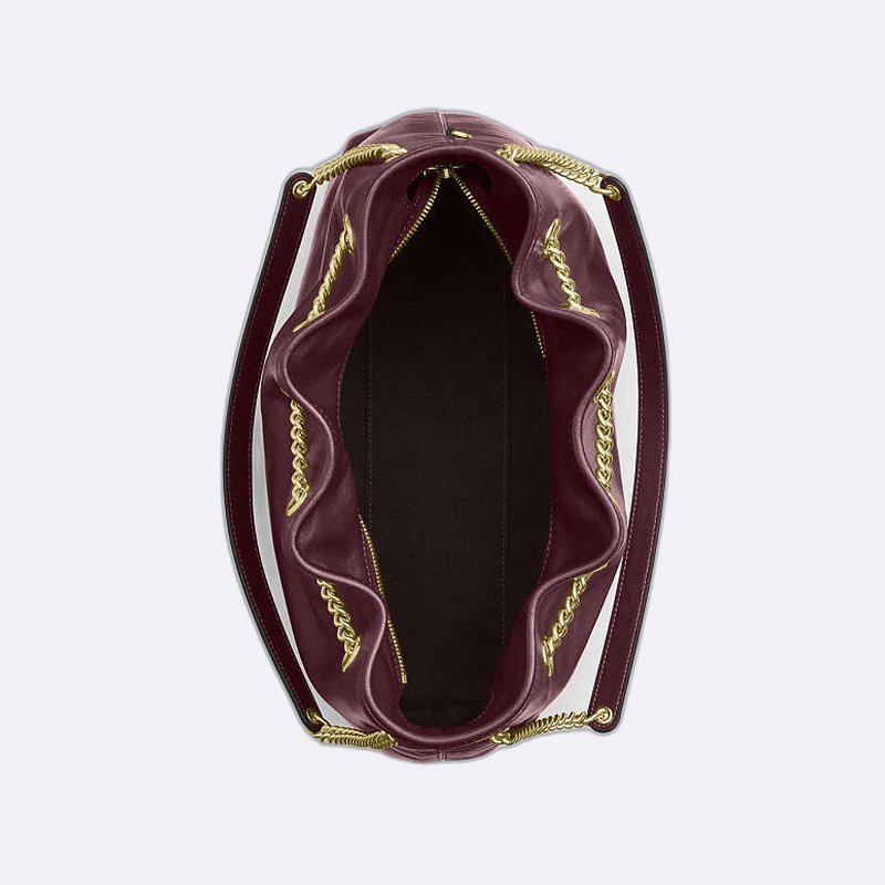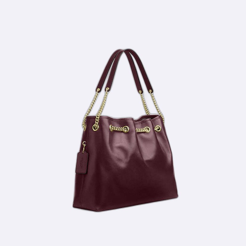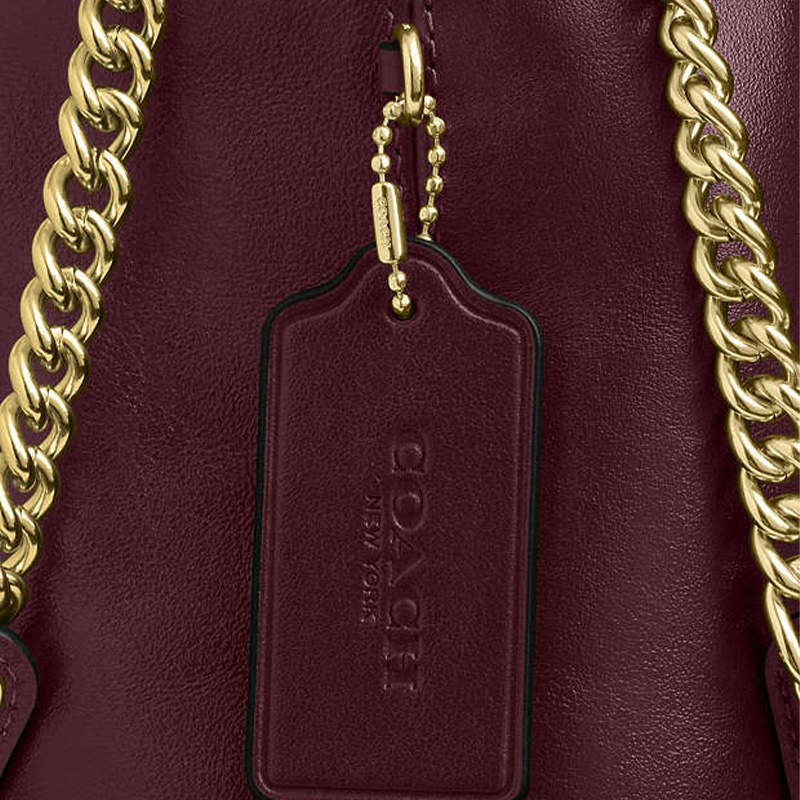 أضيفي لمسة من الفخامة إلى إطلالتك مع حقيبة الدلو الأنيقة من كوتش. مصنوعة من جلد السويدي المبطن مع تفاصيل سلسلة ذهبية، هذه الحقيبة مثالية لحمل جميع ضرورياتك اليومية بأناقة.