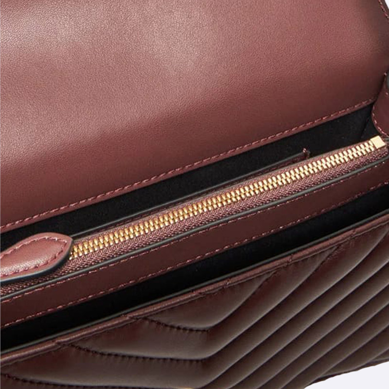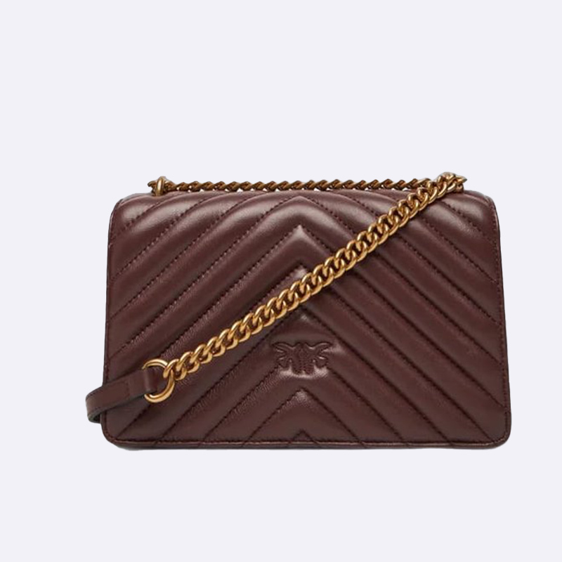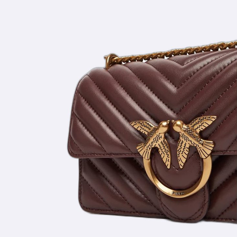 أضيفي لمسة من الأناقة إلى إطلالتك مع حقيبة بينكو لوف بيبي باف. تصميم فاخر من الجلد المبطن مع سلسلة ذهبية، مثالية للمرأة العصرية.