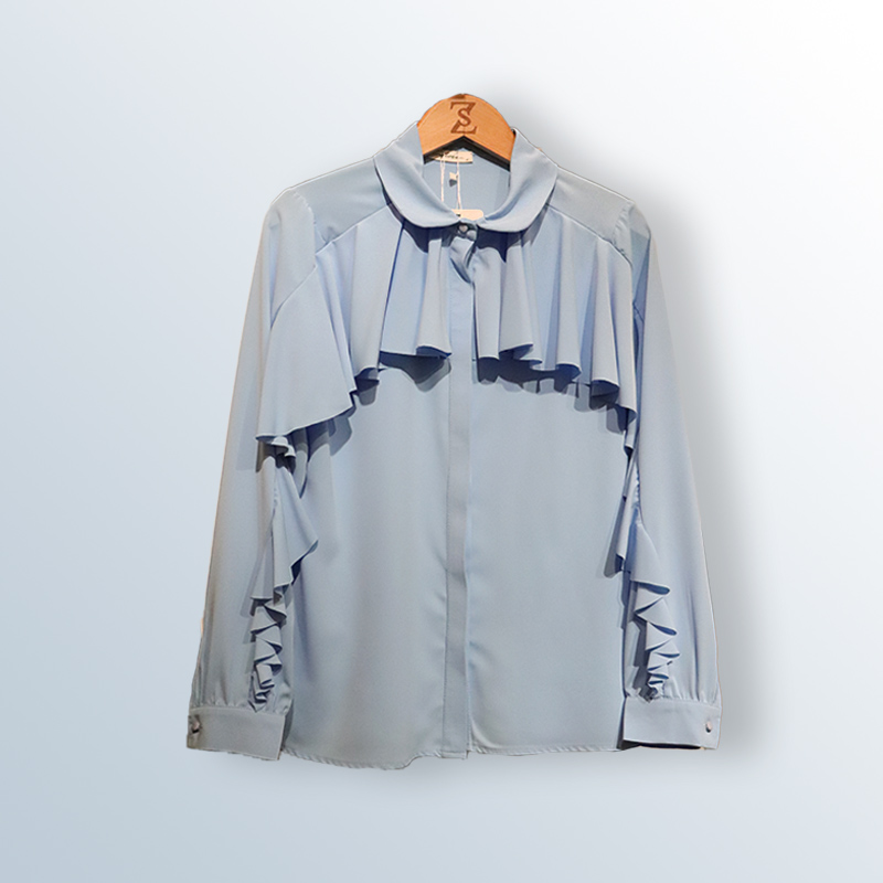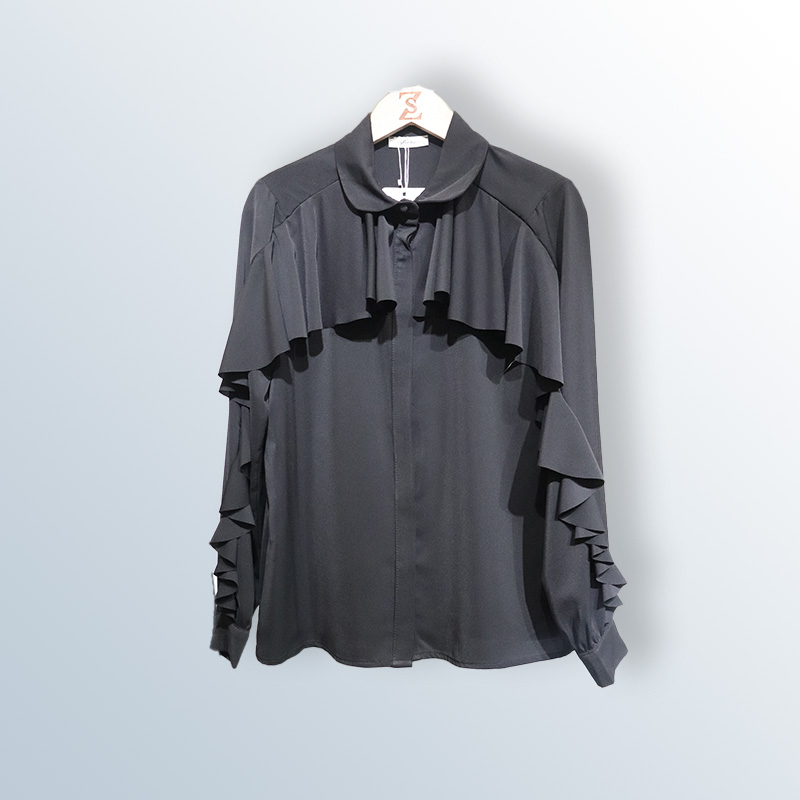 Ruffled blouse with bow tie collar