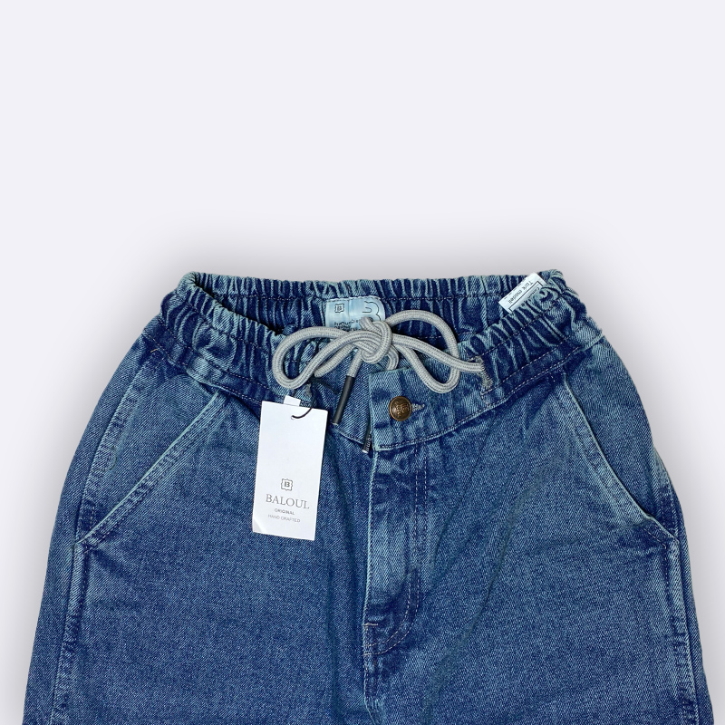 بنطال جينز رجالي بتصميم عصري مريح، خصر مطاطي مع رباط لتعديل المقاس، وقصة مستقيمة مناسبة للاستخدام اليومي. خامة دنيم متينة مع تفاصيل خياطة تضيف لمسة شبابية وأنيقة.