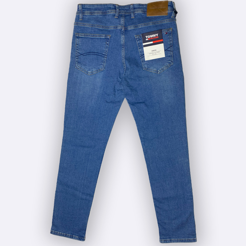بنطال جينز رجالي من Tommy بقصّة سليم أنيقة، قماش مريح ومرن، لون أزرق فاتح يناسب الإطلالات اليومية. تصميم عملي مع جيوب أمامية وخلفية، وخامة عالية الجودة تمنح راحة طوال اليوم.