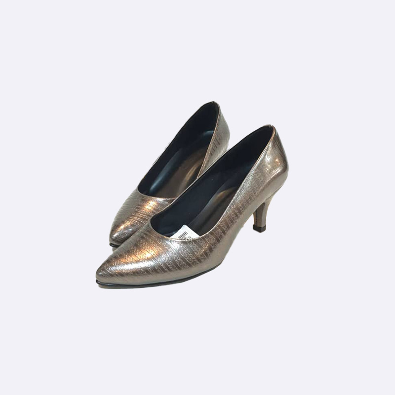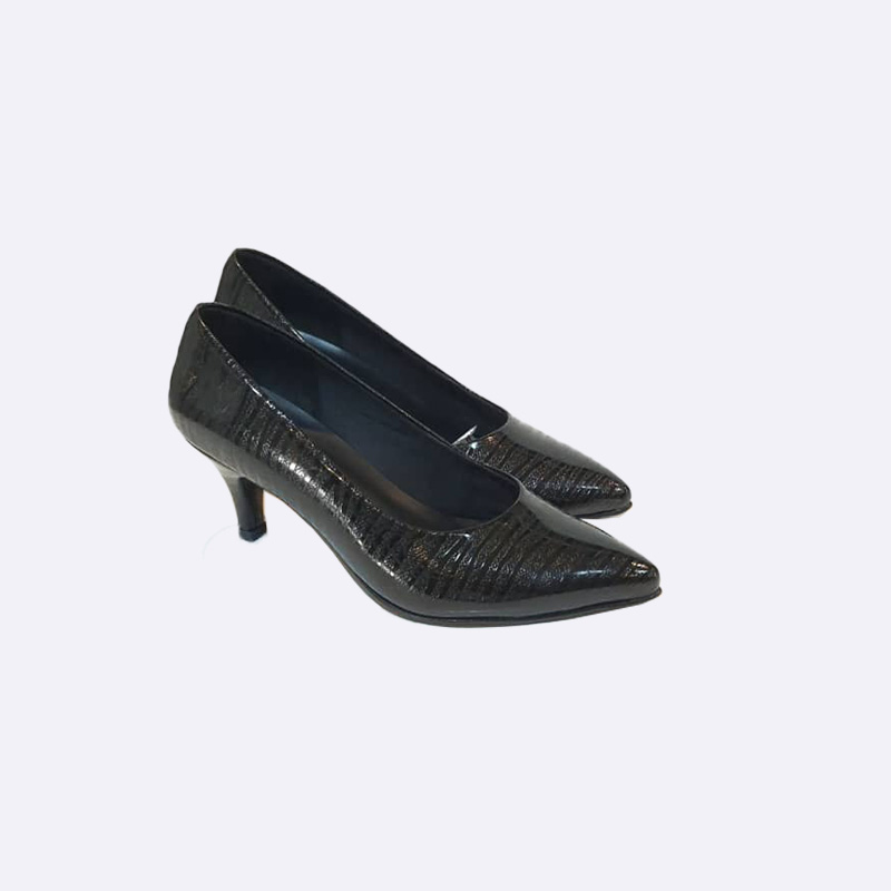 حذاء نسائي بتصميم أنيق ومقدمة مدببة، يتميز بكعب رفيع ومنخفض، مناسب للمناسبات الرسمية والطلعات اليومية