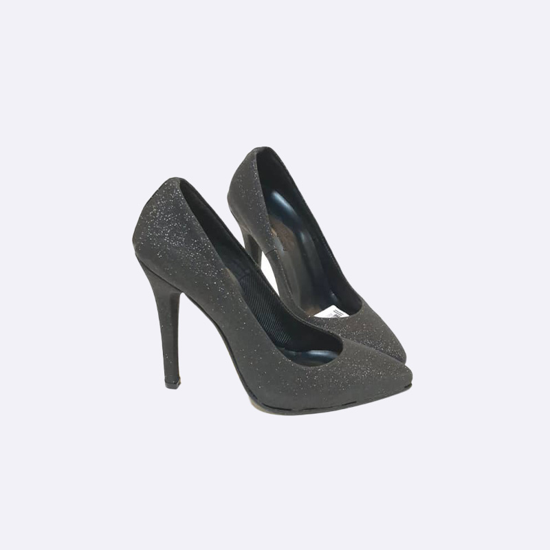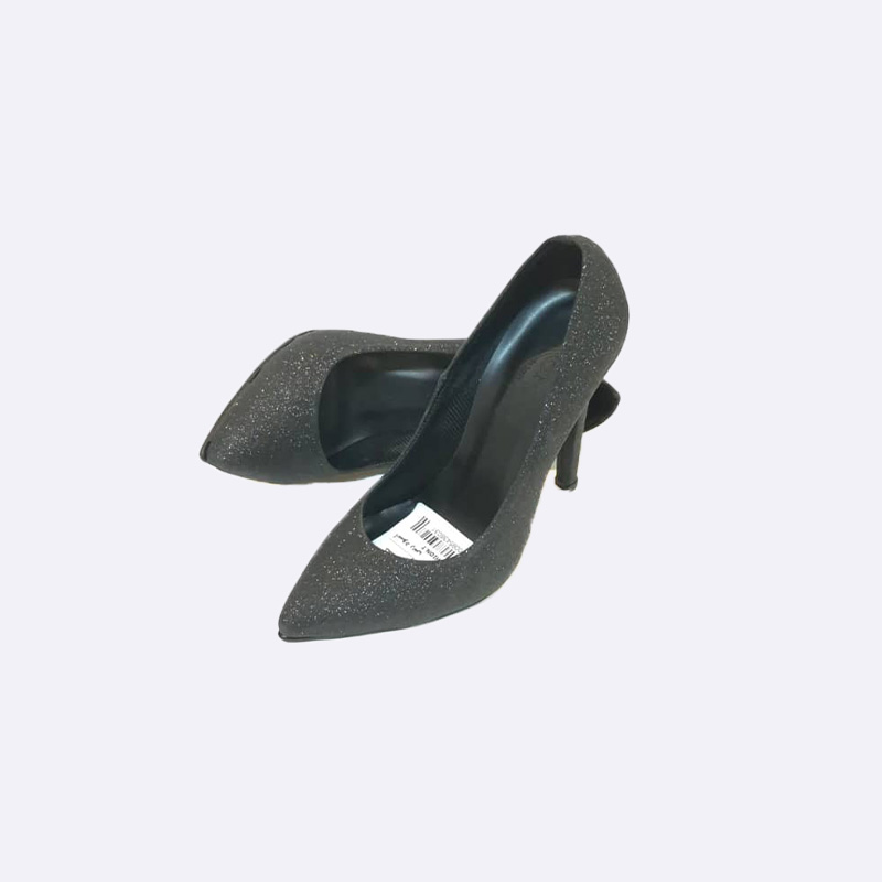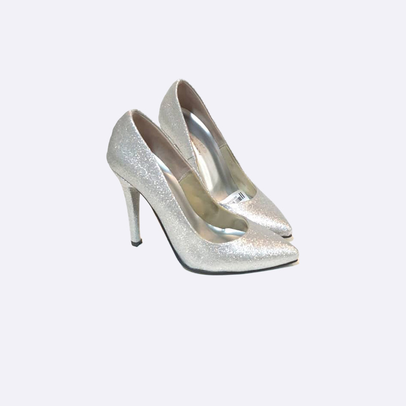حذاء كعب عالي بتصميم أنيق ومقدمة مدببة، مزين بلمعة جذابة، مناسب للمناسبات والحفلات لإطلالة أنيقة.