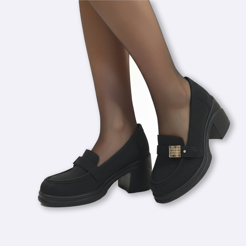 حذاء لوفر نسائي أنيق مصنوع من قماش الجينز بتصميم مريح وكعب عريض ثابت، مناسب للاستخدام اليومي ويمنح إطلالة عصرية ومميزة.