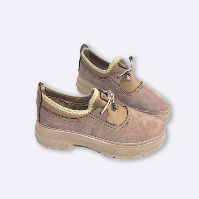 حذاء نسائي عملي بتصميم كاجوال مصنوع من خامة الشامواه الناعمة، يتميز برباط مطّاطي لسهولة الارتداء، ونعل مريح مناسب للمشي اليومي. تصميم أنيق يناسب الإطلالات اليومية.