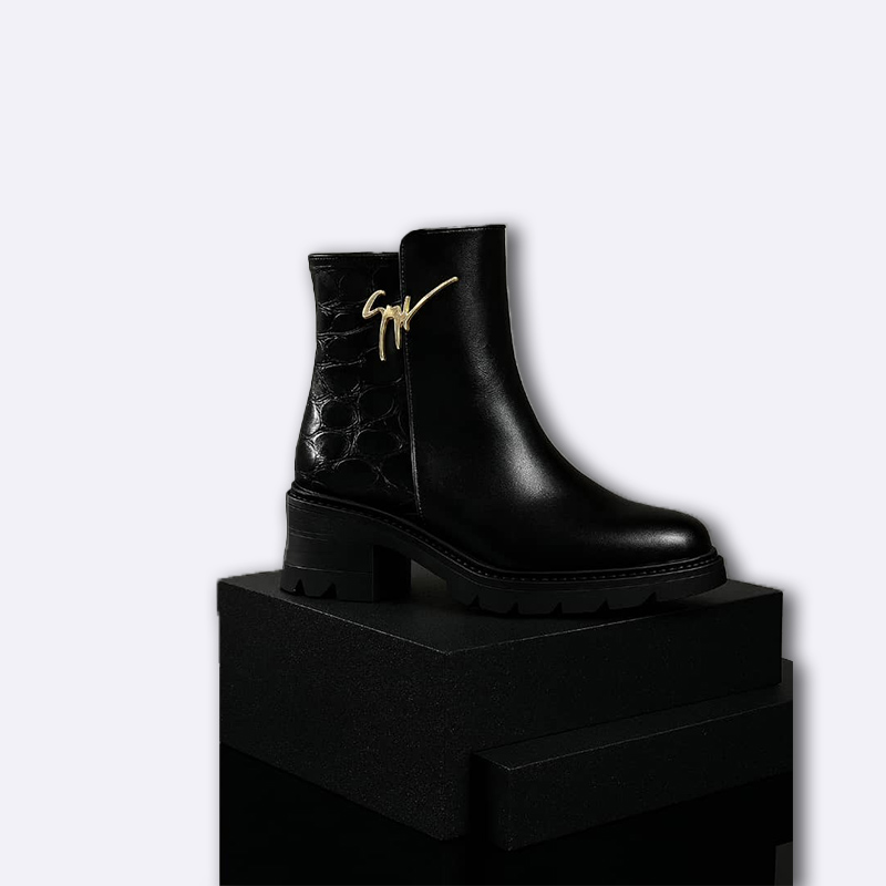 جزمة أنيقة وعملية بتصميم عصري يأتي بكعب عريض مريح، مزوّدة بحزام معدني يضيف لمسة فخامة. مثالية للإطلالات اليومية والشتوية وتتناسب مع مختلف الإطلالات الكاجوال والأنيقة.
