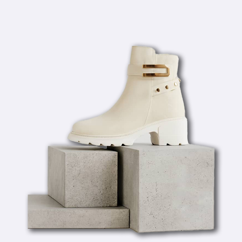 Chunky Ankle Boots with Side Zipper & Lock Detail