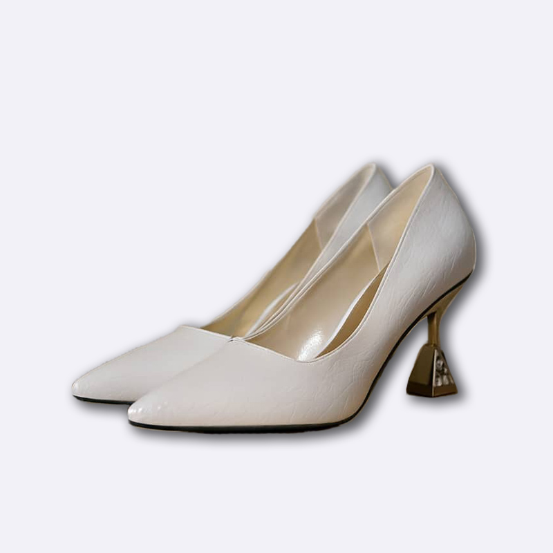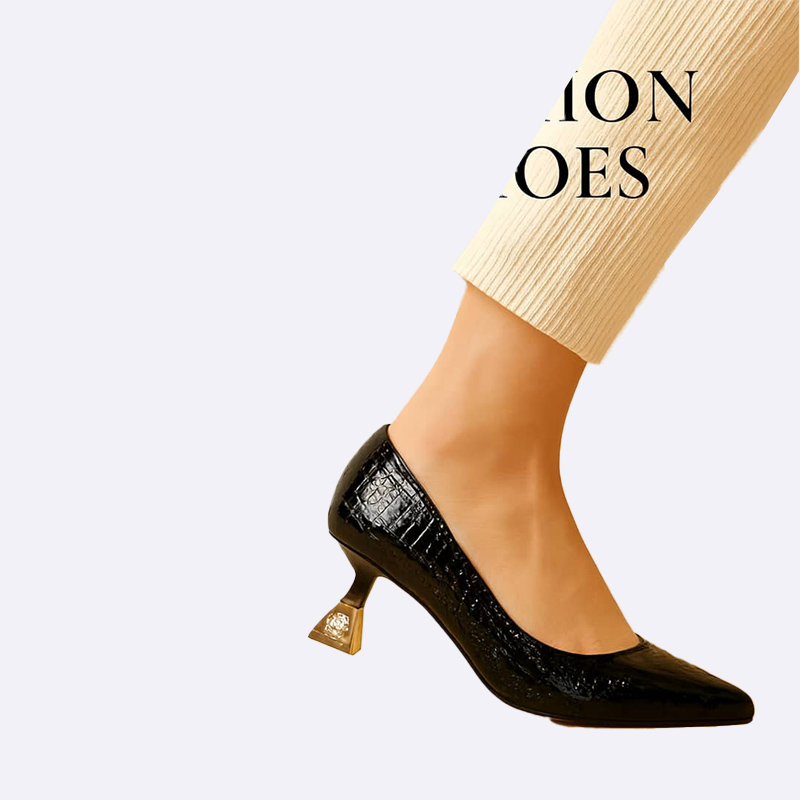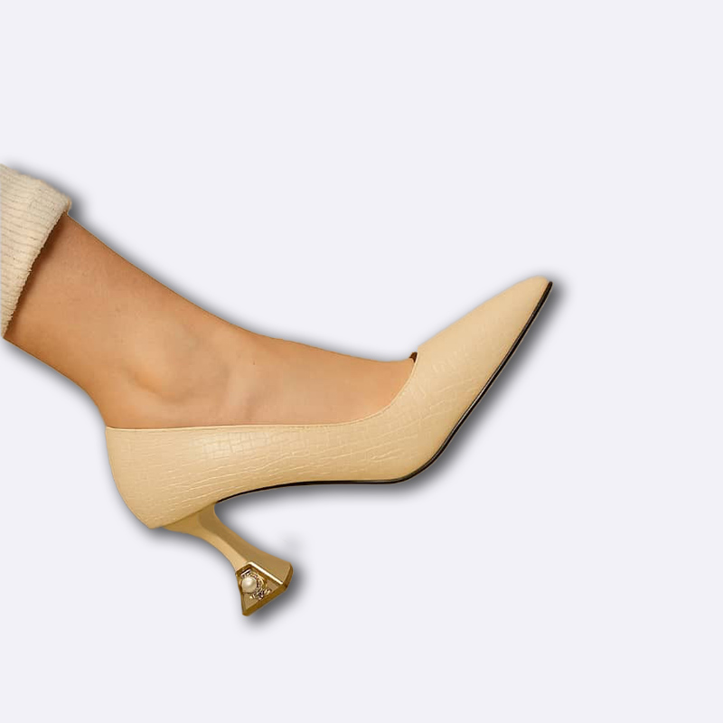 كعب نسائي أنيق يتميز بتصميم مقدمة مدببة ونقشة فاخرة تضيف لمسة راقية، مناسب للإطلالات الرسمية والسهرات. يوفر راحة وثبات بفضل كعبه المميز وتصميمه العصري.