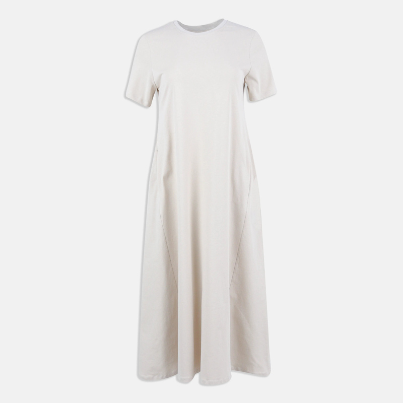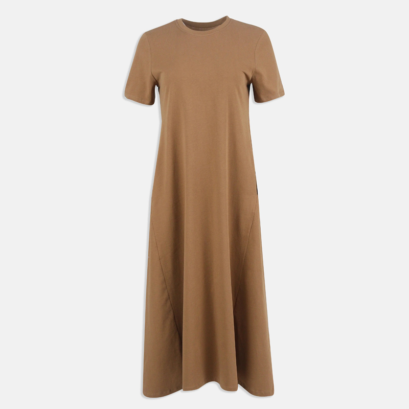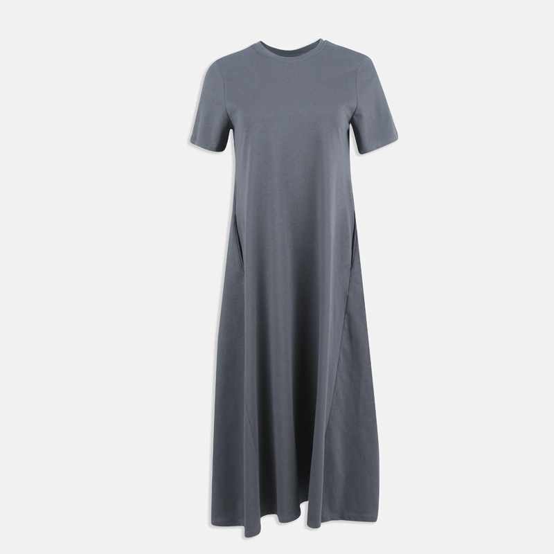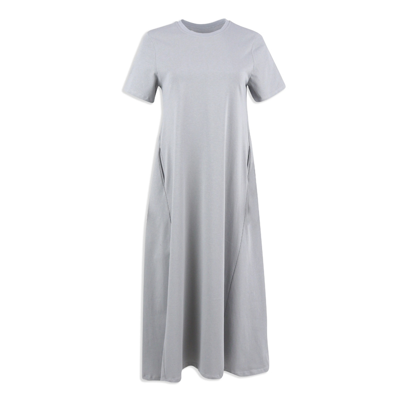 فستان ماكسي عملي بقصة تيشيرت وأكمام قصيرة لراحة يومية.