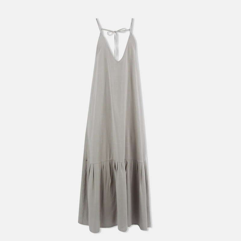 فستان ماكسي برباط رقبة وتفاصيل طبقات لستايل صيفي أنيق.