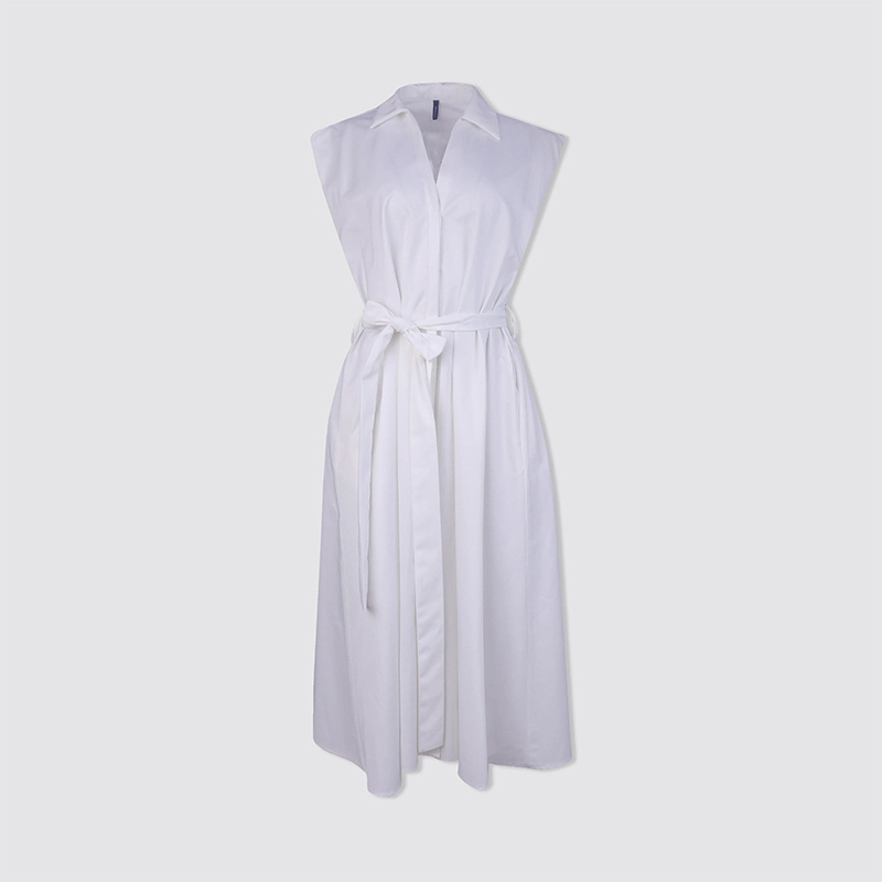 فستان قميص بحزام يبرز الخصر بتصميم بسيط وأنيق.