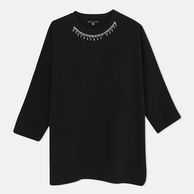 تونيك ناعم بأكمام من قماش مزيج القطن بتطريز أنيق حول الرقبة. متوفر بألوان: أوف وايت، سماوي، نهدي فاتح، أخضر فاتح، رمادي غامق، وأسود. مريح ومثالي للإطلالة اليومية. 72? قطن، 28? بوليستر.