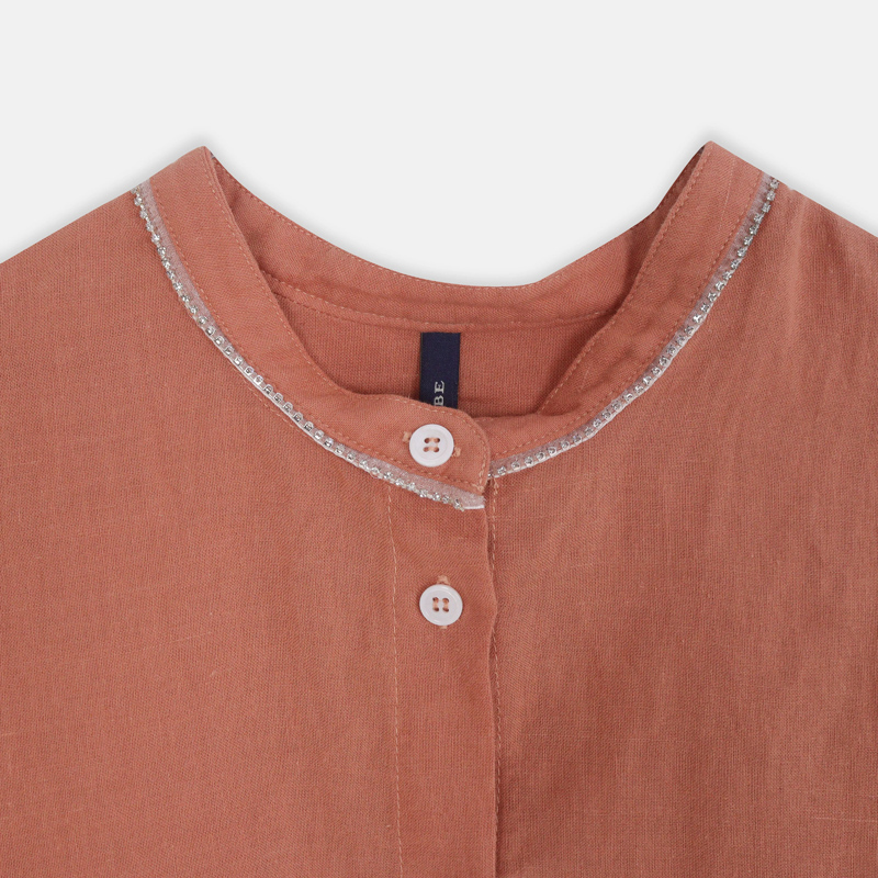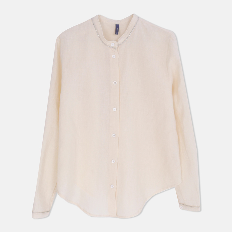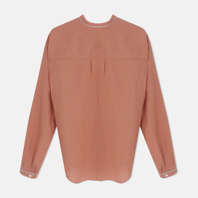 قميص نسائي بياقة ماو مصنوع من قماش راميه 100%، خفيف، مريح، وصديق للبيئة. تصميم أنيق بلمسة عصرية وبسيطة. مثالي للارتداء اليومي أو لإطلالة كاجوال أنيقة. متوفر بالأبيض، البيج، الفستقي، والقرميدي