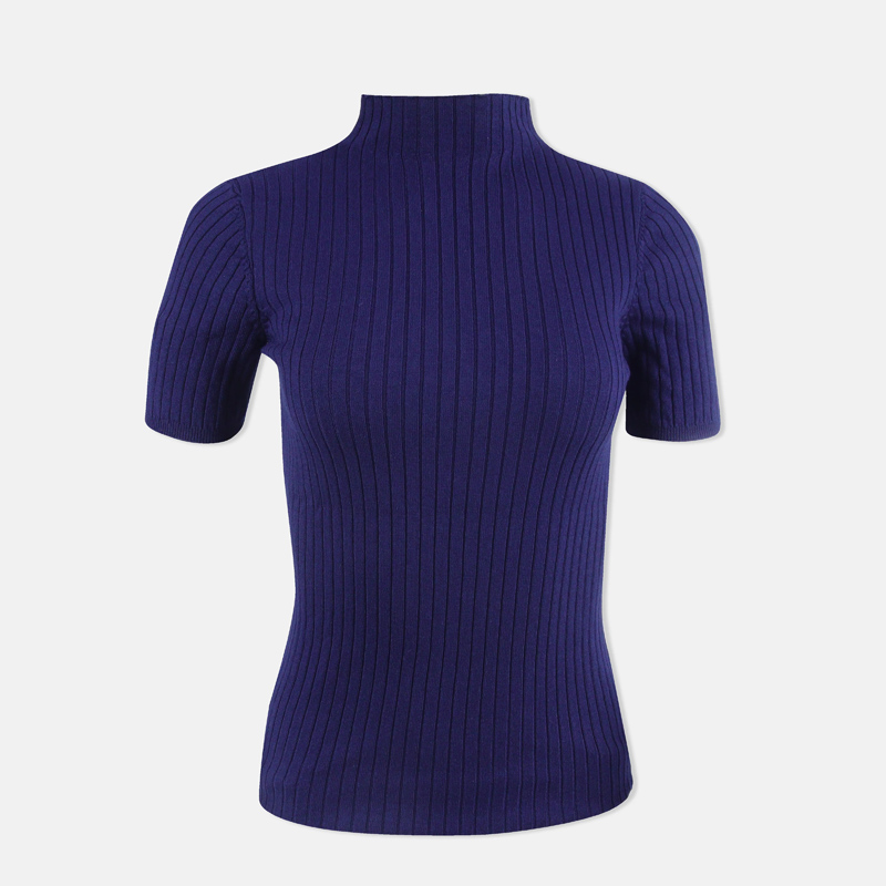 تألقي بإطلالة أنيقة مع توب ياقة عالية بحياكة مضلعة ناعمة. تصميم عصري وخامة مريحة من مزيج المودال والقطن والنايلون. . متوفر بألوان: عفني، بني، أحمر، نيلي، كحلي