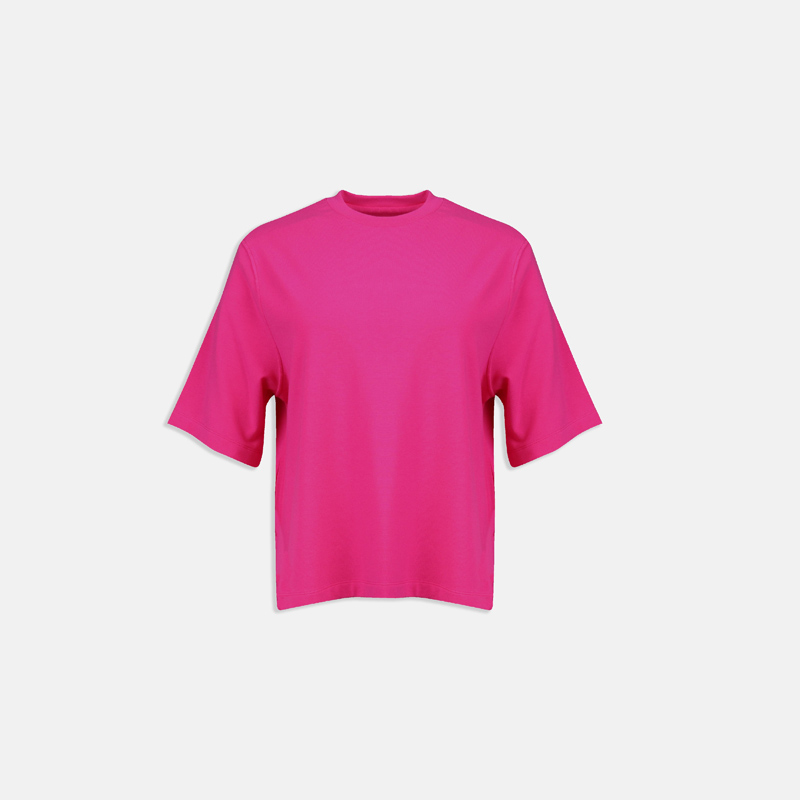 تي شيرت نسائي أنيق بمزيج مريح من القطن والإسباندكس (92% قطن، 8% إسباندكس). يأتي بمجموعة متنوعة من الألوان الجميلة مثل الأسود، الأزرق، الأحمر، الفوشيا، الأخضر، التوتي، والأصفر.