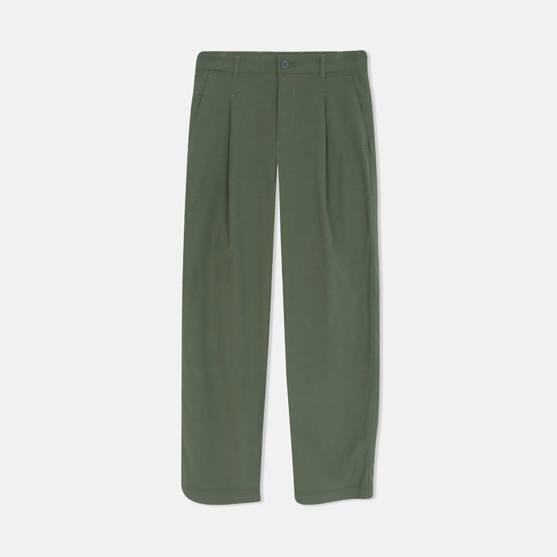 بنطال رجالي بتصميم عصري يجمع بين الألوان الأوف وايت، البيج، والزيتي، مما يضفي مظهراً أنيقاً وحديثاً. مصنوع من مزيج 50% قطن و50% تينسيل، مما يضمن الراحة والتهوية مع إحساس ناعم.