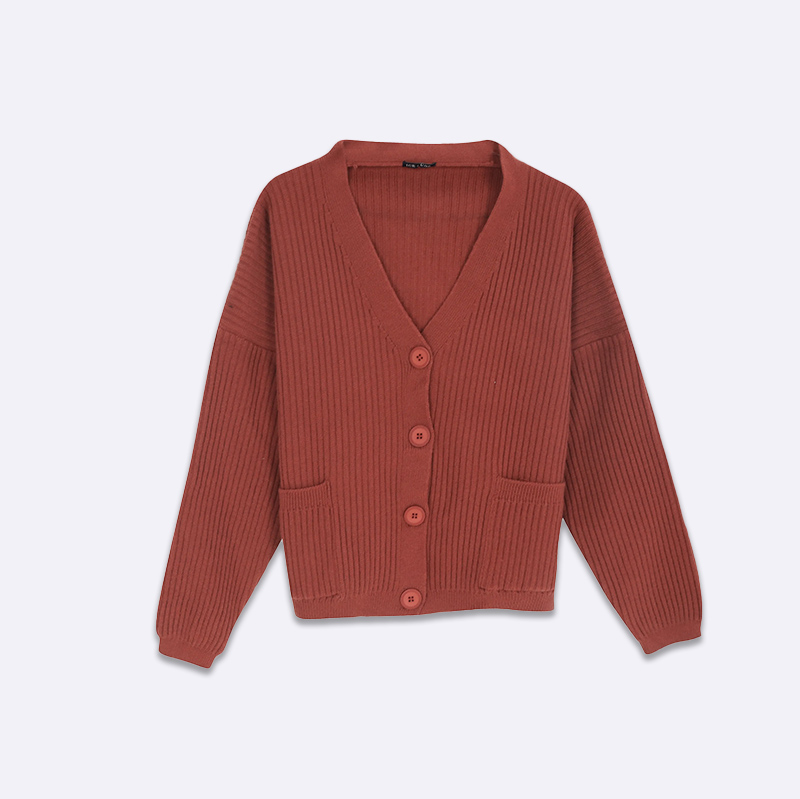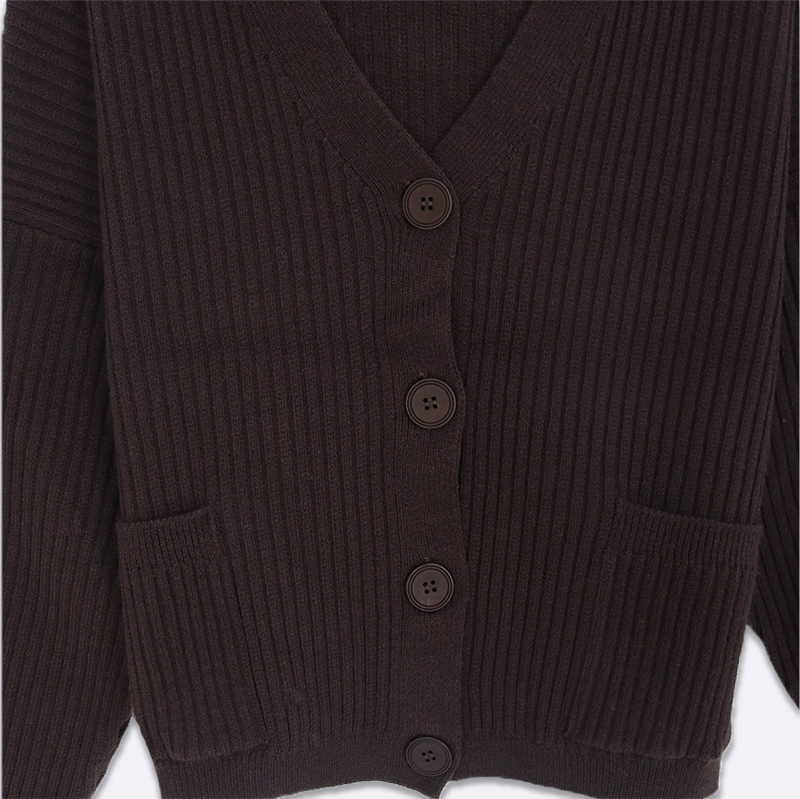 Ribbed V-Neck Cardigan Sweater with Button Front