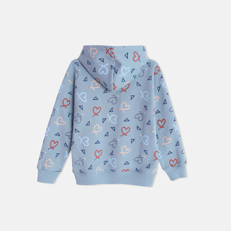هودي فتيات بطبعة قلوب هودي بناتي باللون الأزرق المريح، يجمع بين الأناقة والراحة. مصنوع من مزيج قطني ناعم (53% قطن، 47% بوليستر)، مما يجعله مثالياً للارتداء اليومي.